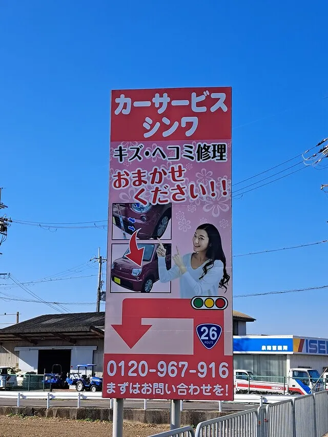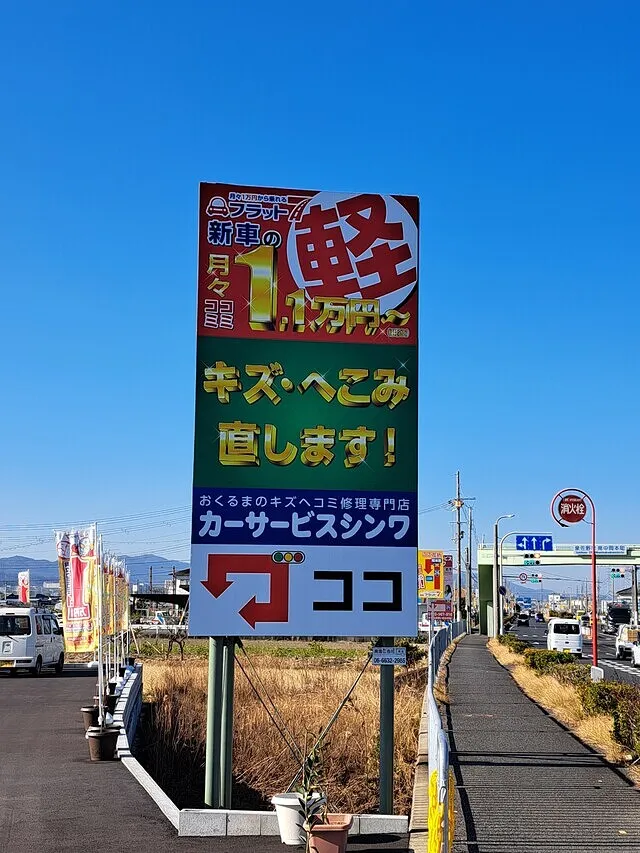 板金塗装(キズ凹み修理)、フラット7(カーリース)、車検など、お車に関するご相談は、泉佐野のカーサービスシンワまで、お気軽にお問い合わせください。