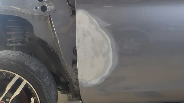板金塗装 ビスタ 左クオーターパネル 左リアドア事例 泉佐野市カーサービスシンワより