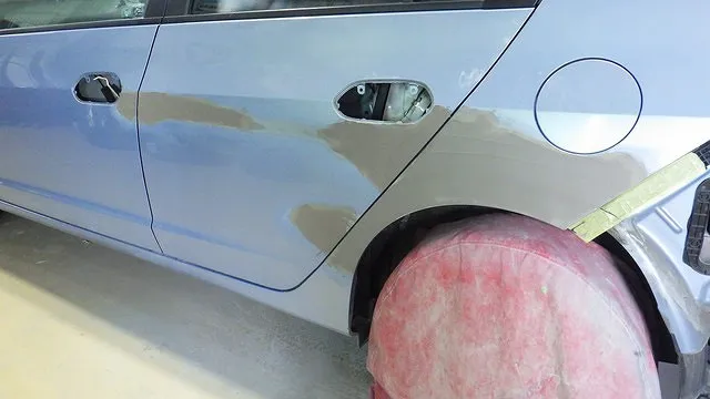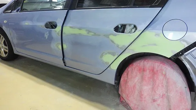 板金塗装 ビスタ 左クオーターパネル 左リアドア事例 泉佐野市カーサービスシンワより