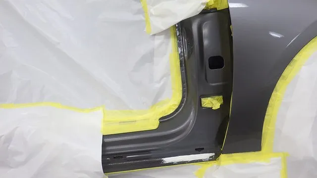 BMW ミニクーパー リアゲート 鈑金 塗装 クリア剥げ 岸和田