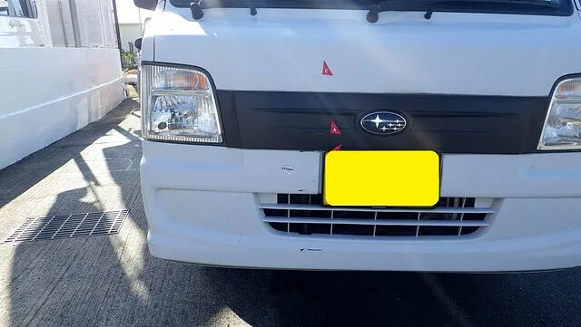 泉佐野市 スバル サンバー 軽トラ ボンネット バンパー キズヘコミ 板金塗装修理 泉南市のお客様 カーサービスシンワ カーサービス シンワ