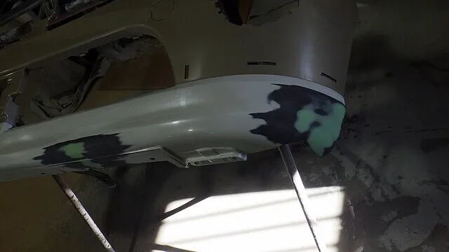 日産マーチのフロントバンパー穴埋めと天井の再塗装 泉佐野市