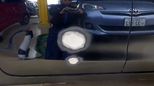 ダイハツ ミライース 自転車 キズ凹み 保険修理事例 共栄火災様 柏原市 大阪