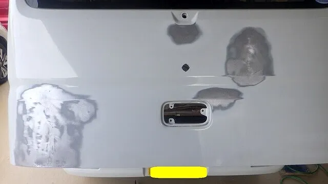BMW ミニクーパー リアゲート 鈑金 塗装 クリア剥げ 岸和田