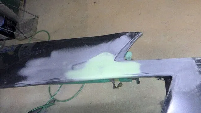 ニッサン GT-R 右サイドスポイラー 鈑金塗装 高石市から