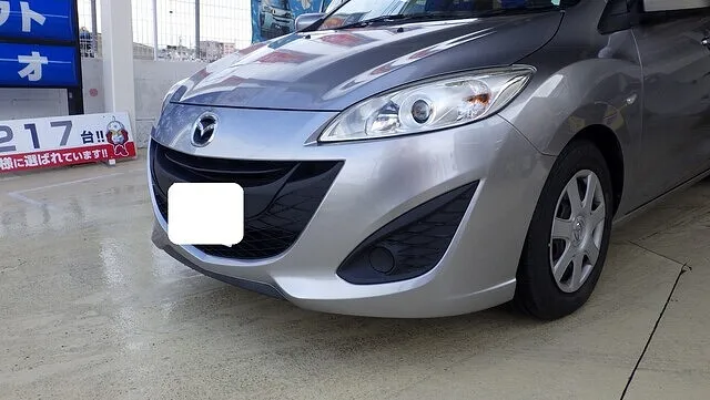 泉佐野市 マツダ プレマシー フロントバンパー フロントフェンダー キズヘコミ修理 板金塗装修理 岬町のお客様 カーサービスシンワ カーサービス シンワ