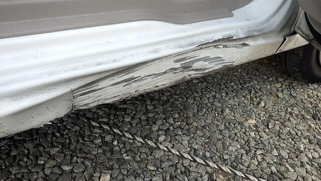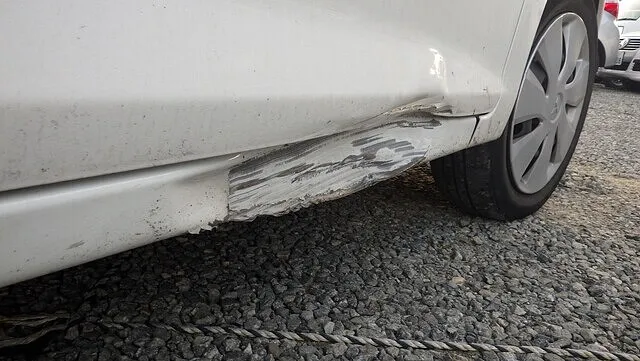 ダイハツ ウェイク 左ロッカーパネル ブロックに擦った キズ ヘコミ 鈑金 塗装 泉佐野