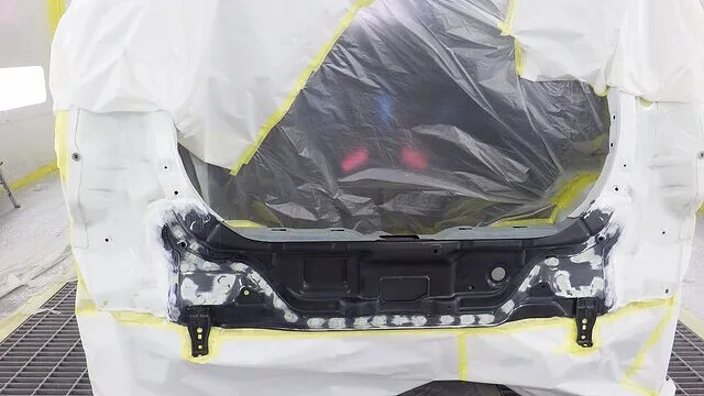 BMW ミニクーパー リアゲート 鈑金 塗装 クリア剥げ 岸和田