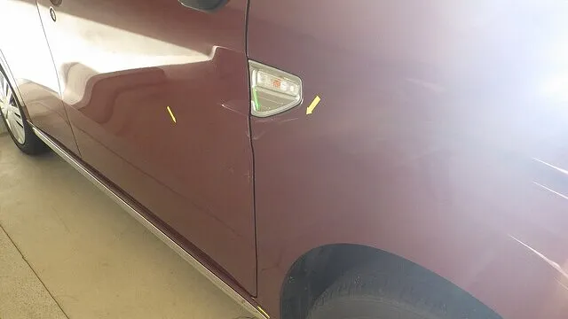 泉佐野市 ダイハツ キャスト 右フェンダー ドア キズ修理 丁寧 安心 修理方法 泉南市のお客様 カーサービスシンワ カーサービス シンワ