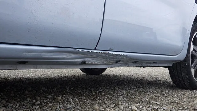 ダイハツ ウェイク 左ロッカーパネル ブロックに擦った キズ ヘコミ 鈑金 塗装 泉佐野