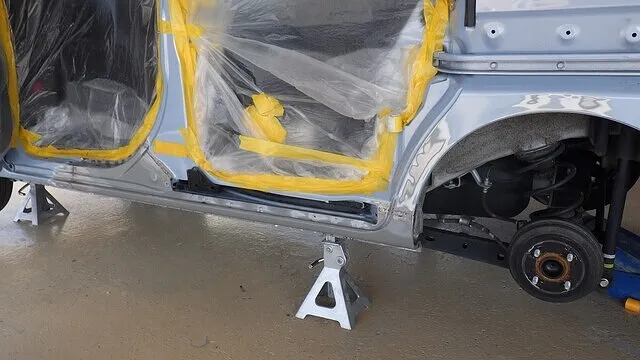 マツダ アクセラスポーツ 左サイドシル 鈑金 塗装 岸和田市から