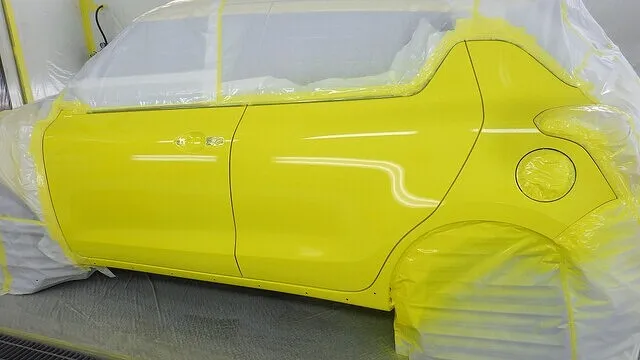 日産マーチのフロントバンパー穴埋めと天井の再塗装 泉佐野市