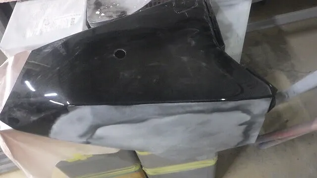 ニッサン GT-R 右サイドスポイラー 鈑金塗装 高石市から