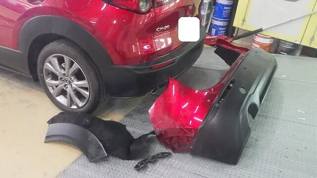 泉佐野市 マツダ CX-30 左後ろ損傷 リアバンパー交換 クオーターパネル ヘコミ修理 車修理 泉佐野市のお客様 カーサービスシンワ カーサービス シンワ