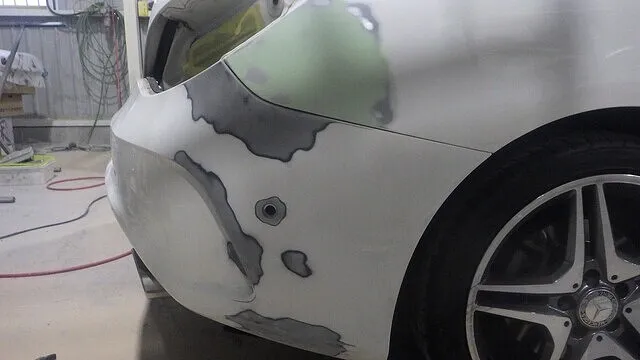 泉佐野市 ベンツ 右後ろ リアバンパー ヘコミ キズ 車修理 岸和田市のお客様 カーサービスシンワ カーサービス シンワ