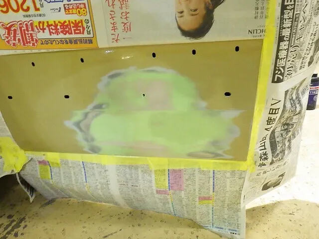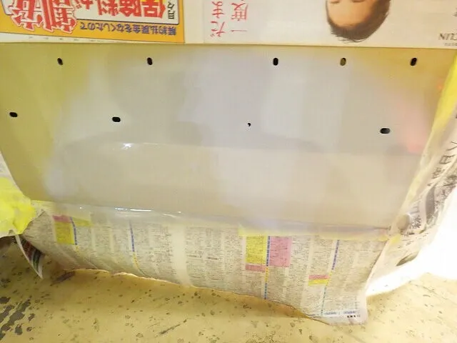 日産マーチのフロントバンパー穴埋めと天井の再塗装 泉佐野市