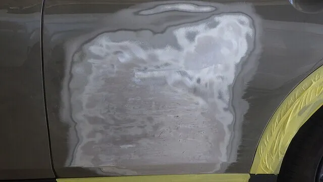 日産マーチのフロントバンパー穴埋めと天井の再塗装 泉佐野市