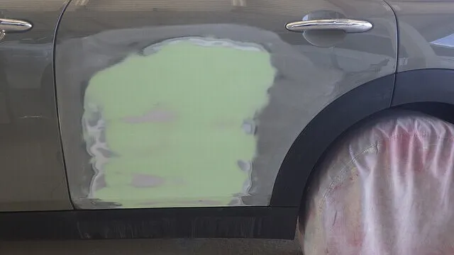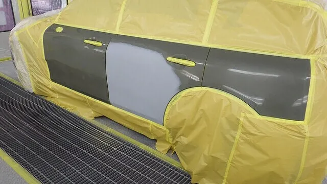 BMW ミニクーパー リアゲート 鈑金 塗装 クリア剥げ 岸和田