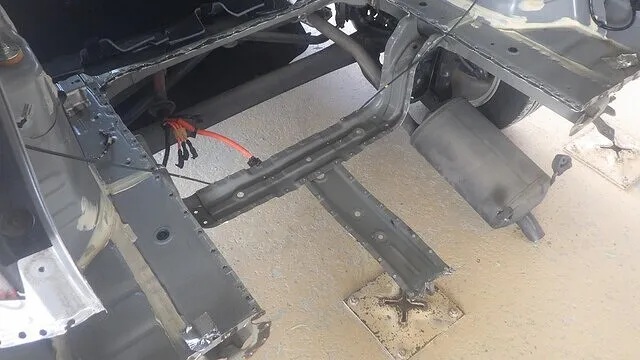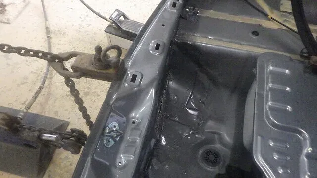 フロアパネルを溶接して、バックパネルを仮り合わせをして溶接します。