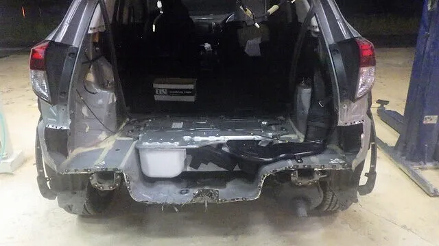 ホンダ ヴェゼル リアゲートヒンジ、ボディの錆 鈑金 塗装 交換