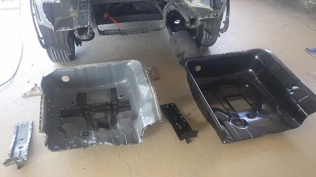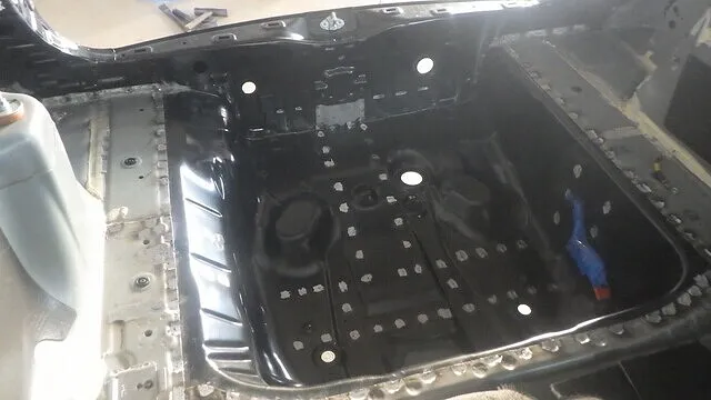 フロアパネルを塗装してからリチウムイオン電池を元通りに組付けします。