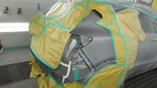 サフェーサーを研磨してペイント部分以外のボディをマスキングと言って養生紙で隠します。