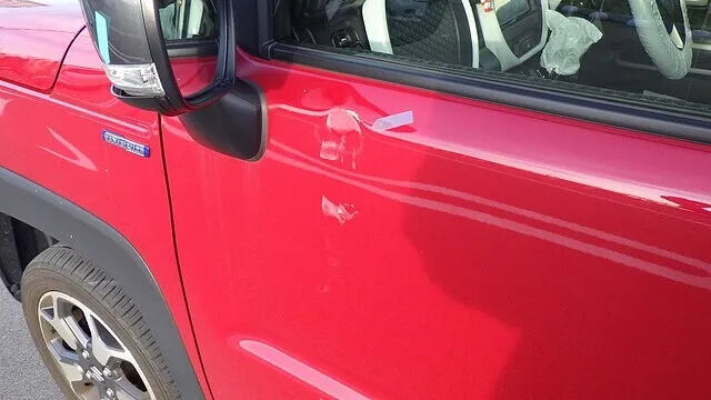 スーパーの駐車場に停車中に隣の車のドアにあてられたとご連絡頂きまして、ご来店頂きお預かりしました。