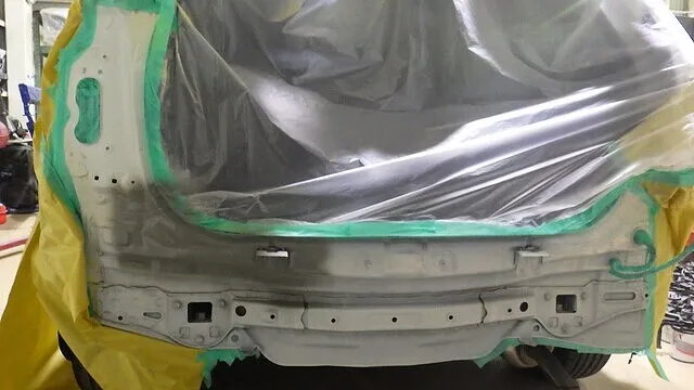 BMW ミニクーパー リアゲート 鈑金 塗装 クリア剥げ 岸和田