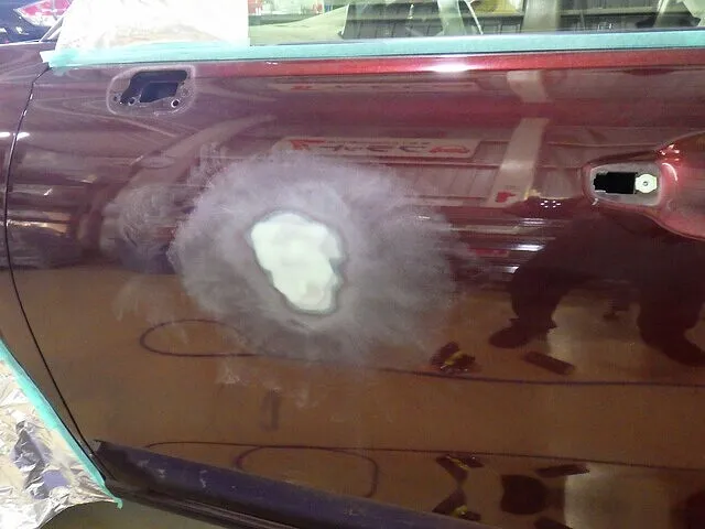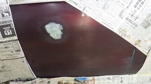 粘土状のパテをつけてそれを研磨して元通りの形に形成出来たら鈑金作業終了です。