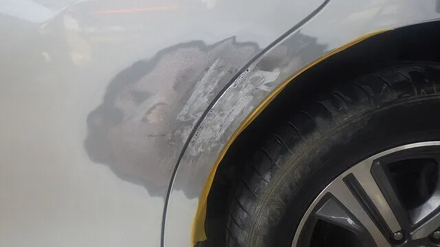 作業内容といたしましては、凹み部分の塗膜をはがして溶接できるようにします。