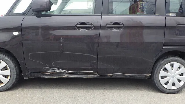 ダイハツ ウェイク 左ロッカーパネル ブロックに擦った キズ ヘコミ 鈑金 塗装 泉佐野
