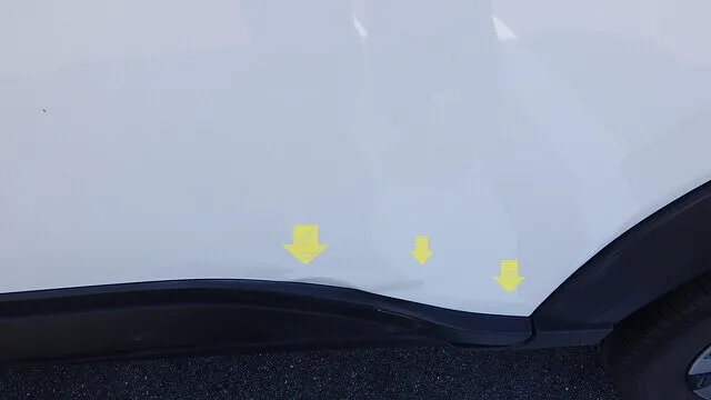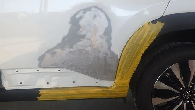作業内容といたしましては凹み部分の塗膜をはがして溶接できるようにします。