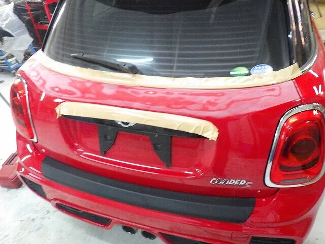 BMW ミニクーパー リアゲート 鈑金 塗装 クリア剥げ 岸和田