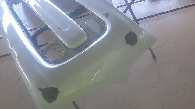 日産マーチのフロントバンパー穴埋めと天井の再塗装 泉佐野市