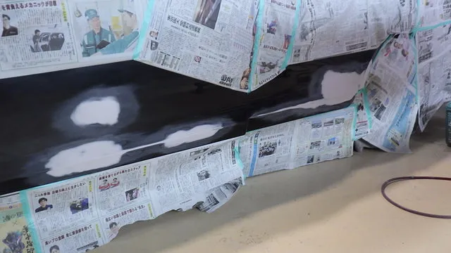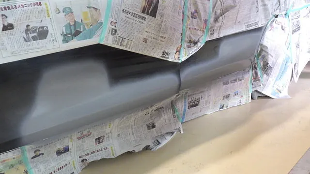 サフェーサーを研磨して、ペイント部分以外のボディをマスキングと言って養生紙で隠します。