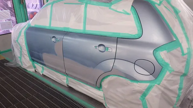 日産マーチのフロントバンパー穴埋めと天井の再塗装 泉佐野市