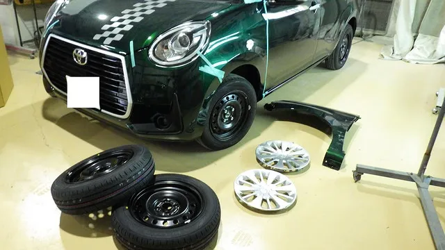 阪南市岬町 ヴィッツ 右前タイヤ周りの修理