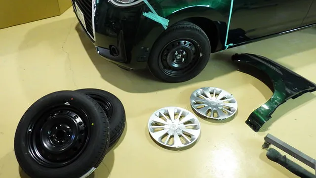 ホンダNBOXの左フロントフェンダーの交換修理事例 泉佐野市