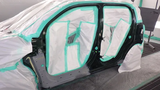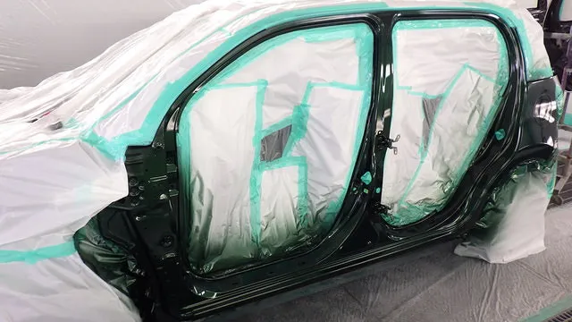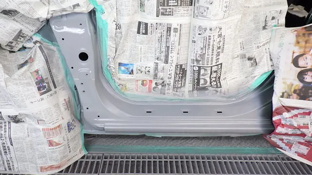 サフェーサーを研磨して、ペイント部分以外のボディをマスキングと言って養生紙で隠します。