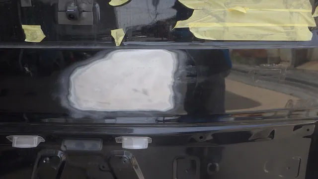 BMW ミニクーパー リアゲート 鈑金 塗装 クリア剥げ 岸和田
