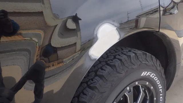 作業内容といたしましては凹み部分の塗膜をはがして溶接できるようにします。