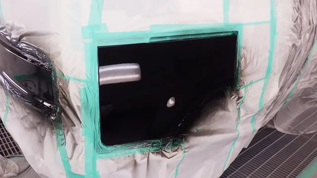 サフェーサーを研磨して、ペイント部分以外のボディをマスキングと言って養生紙で隠します。
