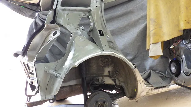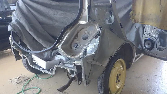 板金塗装 ビスタ 左クオーターパネル 左リアドア事例 泉佐野市カーサービスシンワより