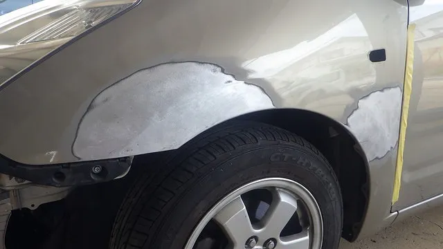 板金塗装 ビスタ 左クオーターパネル 左リアドア事例 泉佐野市カーサービスシンワより