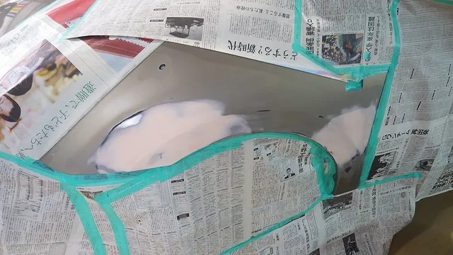 日産マーチのフロントバンパー穴埋めと天井の再塗装 泉佐野市