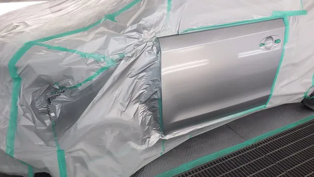 サフェーサーを研磨してペイント部分以外のボディをマスキングと言って養生紙で隠します。