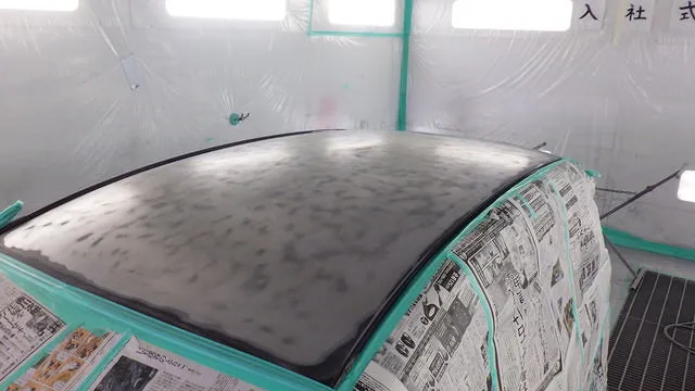 日産マーチのフロントバンパー穴埋めと天井の再塗装 泉佐野市
