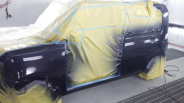 トヨタ bB ドアパンチ修理 保険修理事例 SBI損保様 泉南郡 熊取町