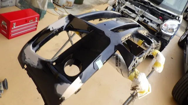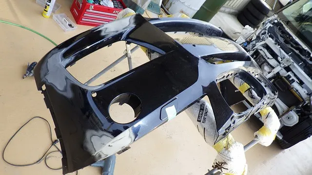 作業内容といたしましては、当店バンパー修理はボディから一旦外して作業します。
