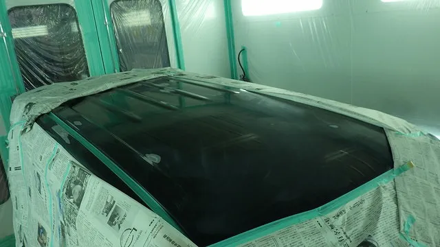 日産マーチのフロントバンパー穴埋めと天井の再塗装 泉佐野市